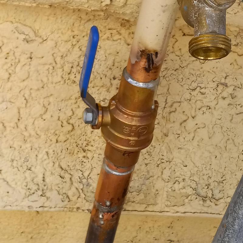 A plumber in Marana, Arizona replaced a damaged hose bib with a new three-quarter inch model. The job included removing the old unit, re-sweating copper pipes, and installing a new male adapter to ensure a secure connection.