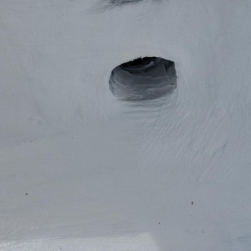 A plumber inspected a recurring clog in a stand-up shower in Tucson, Arizona. The cast iron drain line showed heavy calcification. Standard clearing tools failed. A larger snake machine will be used to remove the buildup and improve drainage.
