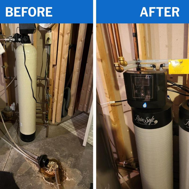 Alpha Rooter and Plumbing installed a water softener system with existing water loop and salt setup in Tucson, Arizona. The technician connected two lines extending from the wall without drilling, completing the installation efficiently and at a lower cost than a previous estimate.