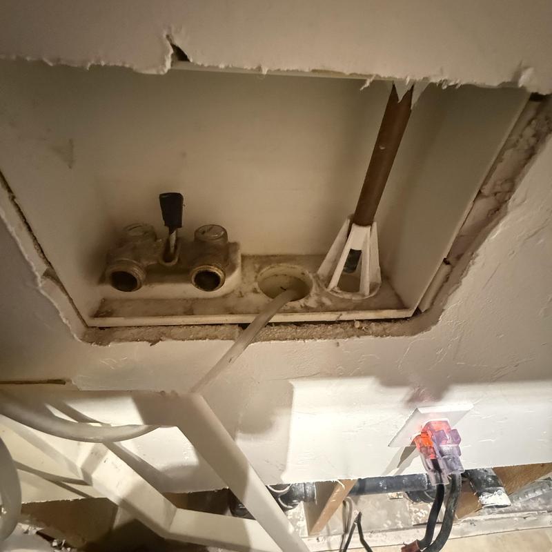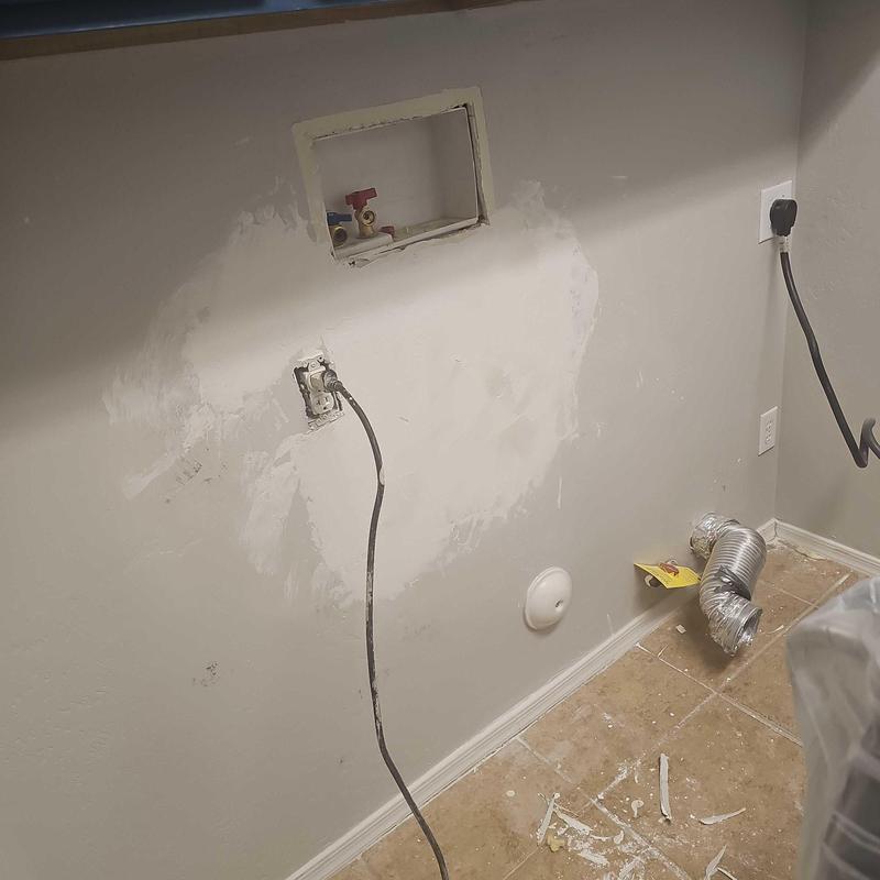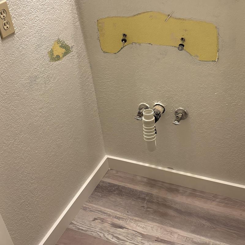 Alpha Rooter and Plumbing repaired water damage by remodeling and refinishing the wall behind a washing machine in Tucson, Arizona. The work addressed issues caused by a leak, restoring the wall to a functional and stable condition.