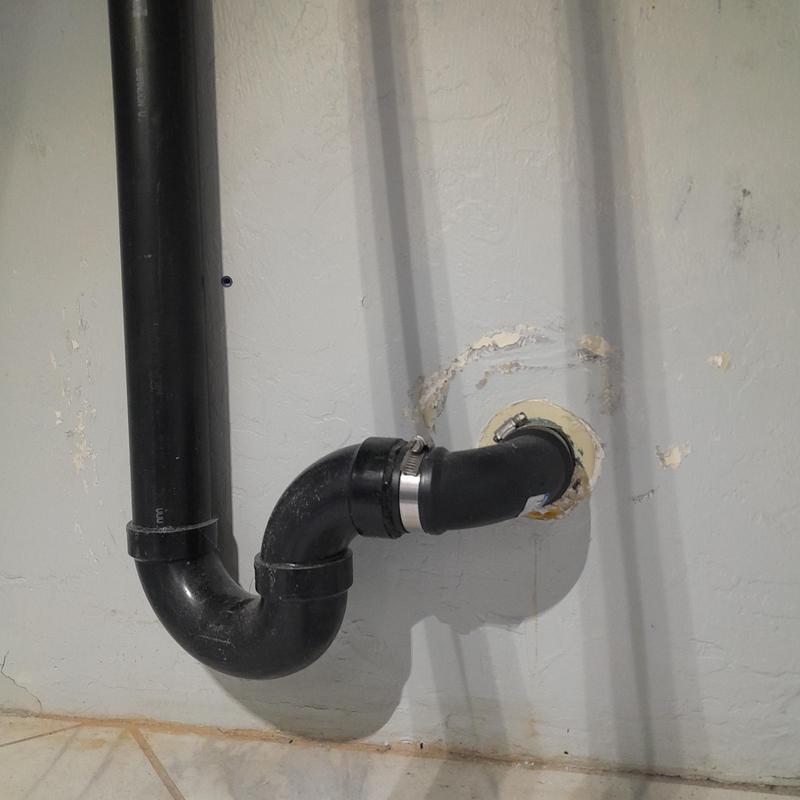 A plumber repaired a leak behind a washing machine in Sahuarita, Arizona. The work addressed the pipe issue, but the agreement did not cover restoring the wall finish.