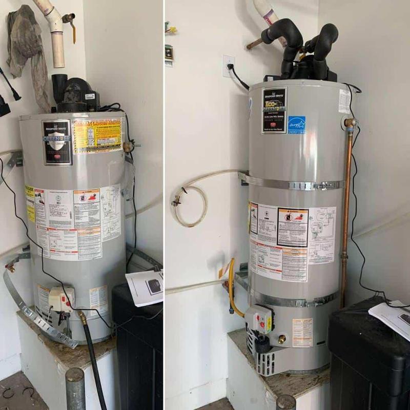 Alpha Rooter and Plumbing installed a new water heater in Tucson, Arizona. The team added a new heater pan, connected fresh supply lines, and installed a relief valve. They also set up a PVC drain from the heater pan to ensure proper water flow and safety.