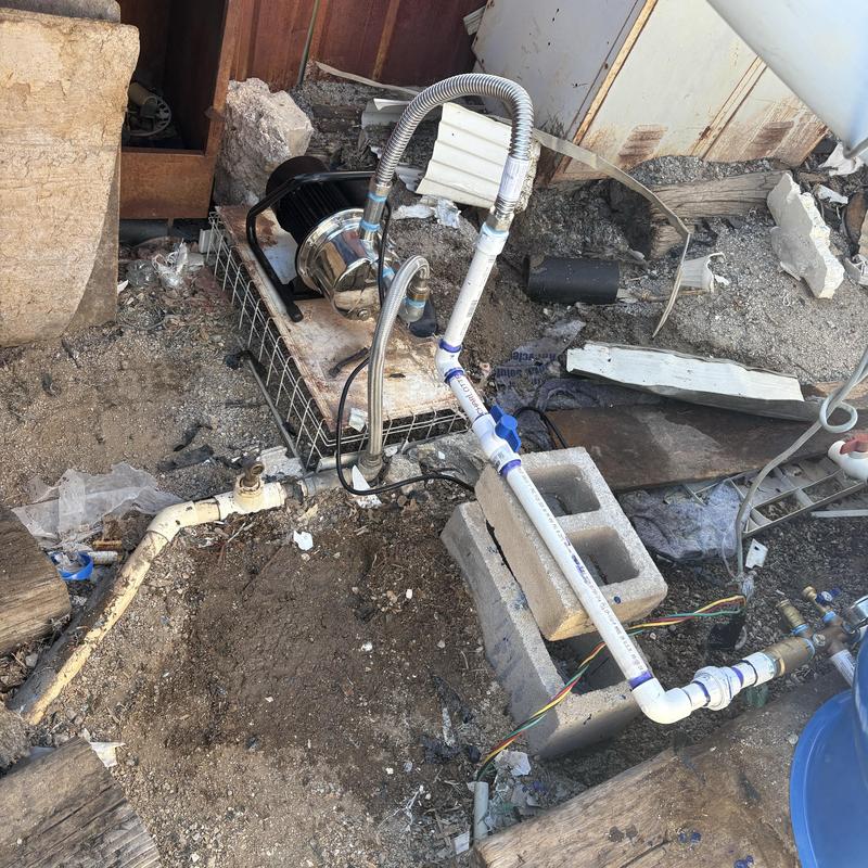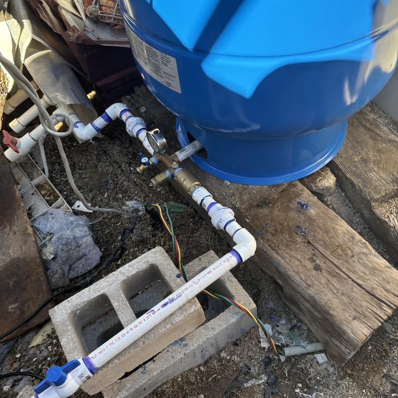 Alpha Rooter and Plumbing removed a temporary pump, disconnected the old pump and pressure tank, and installed new equipment. The system was tested after installation to ensure proper function. This service took place in Benson, Arizona.